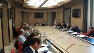 Il presidente Aeranti,, avv. Marco Rossignoli, nel corso dell’assemblea. Alla sua destra, il dott. Stefano Sandroni, revisore unico.