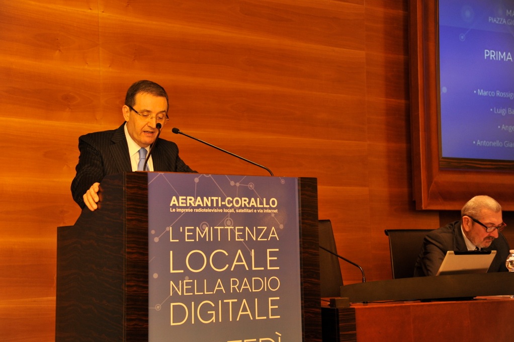 Il convegno ha avuto inizio con la  Relazione di  Marco Rossignoli, Coordinatore AERANTI-CORALLO e Presidente AERANTI, cui sono seguiti gli interventi di Luigi Bardelli, componente dell’esecutivo di AERANTI-CORALLO e Presidente CORALLO, Angelo Marcello Cardani, Presidente della Autorità per le Garanzie nelle Comunicazioni e di Antonello Giacomelli, Sottosegretario allo Sviluppo Economico con delega alle Comunicazioni. I lavori sono stati aperti dal segretario generale AERANTI Fabrizio Berrini