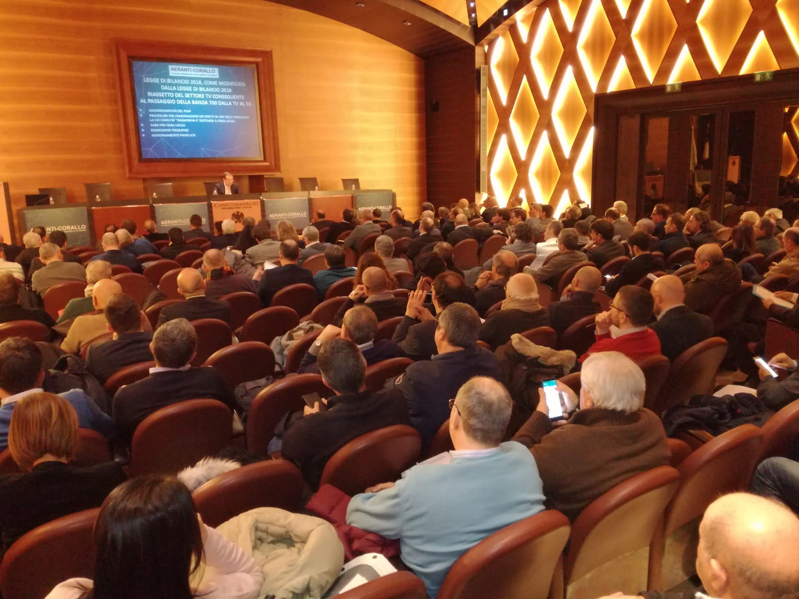 Si è svolto a Roma giovedì 31 gennaio 2019, presso il Centro Congressi di Confcommercio, il seminario organizzato da Aeranti-Corallo e riservato alle imprese televisive locali associate, sulle nuove norme introdotte dalla legge di bilancio 2019 in relazione alla dismissione della banda 700 e al passaggio al digitale terrestre tv di seconda generazione.
