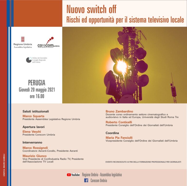 Si è svolto il 20 maggio 2021, a Palazzo Cesaroni (Perugia) un seminario organizzato dal Corecom Umbria, in collaborazione con l’Ordine regionale dei giornalisti, in cui si sono affrontate le tematiche relative alle nuove
