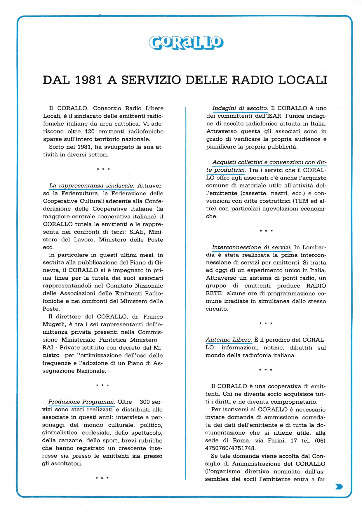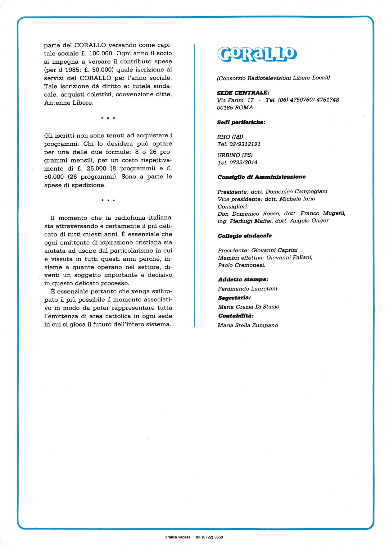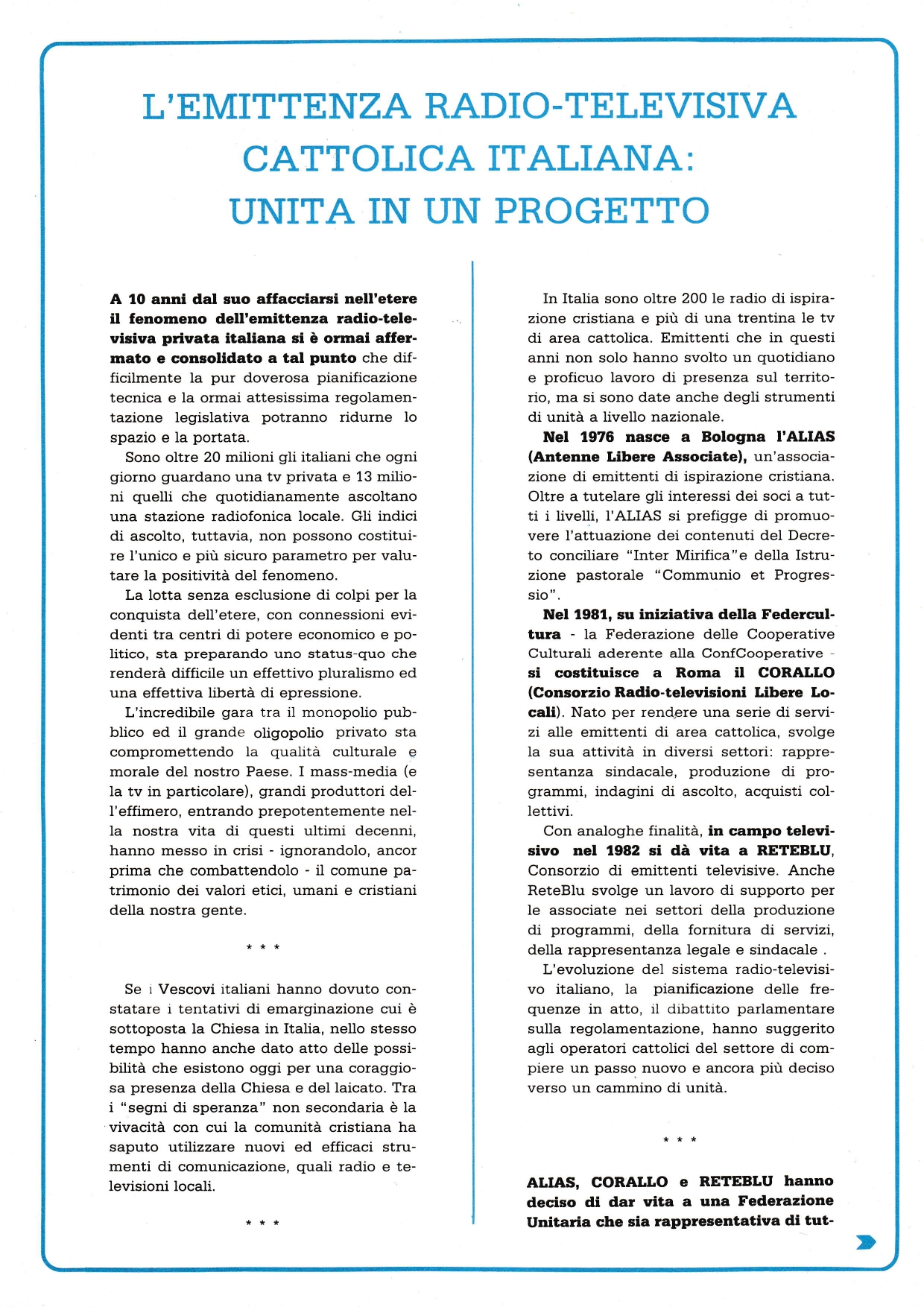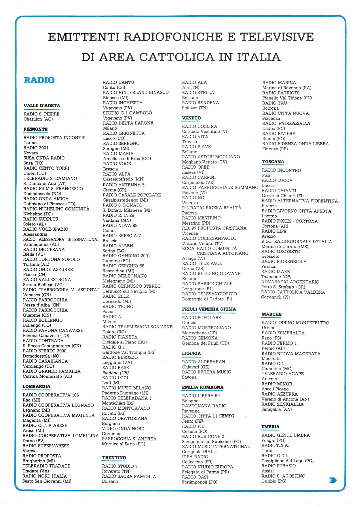 L’EMITTENZA RADIO-TELEVISIVA CATTOLICA IN ITALIA – 1985
